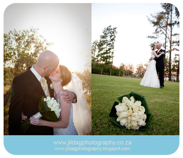 Jo looked beautiful in her dress which was made by Ilse Roux. Ilse's dresses are made to fit you absolutly perfectly. She makes you feel like a real princess. The reception was held at Rusticana, and even Carl who is a chef at a 5 star restuarant couldn't fault Rusticana on their hospitality and tasty food.